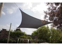 Een lichtdoorlatend ruitvormig schaduwdoek. Dit UV-bestendige doek beschermt tegen de hitte van de zon en verminderd de kans op verbranden. Door middel van de stevige afspanogen is dit schaduwdoek eenvoudig en naar wens te bevestigen. Een hoge kwaliteit schaduwdoek gemaakt van 180 gr/m² ‘high density polyethyleen’ (HDPE). Inclusief handige draagtas (exclusief tarpstokken).