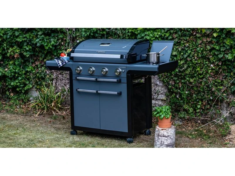 Maak een feest voor familie en vrienden met de 4 Series Premium S gas barbecue. Voorzien van efficiรซnte en krachtige roestvrijstalen branders met het efficiรซnte Blue Flame Power System dat zorgt voor aanzienlijk minder vlammen waardoor uw eten lekker en sappig blijft.