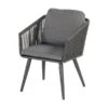 De Solero dining uit de collectie van Sens-line valt op door zijn outdoor textiel. De weerbestendige stof geeft uw terras een luxe en eigentijdse uitstraling. Het aluminium frame zorgt voor een vriendelijk gewicht. De grijstinten zorgen voor een stijlvolle look en zorgt ervoor dat de Solero met vele modellen tafels is te combineren.