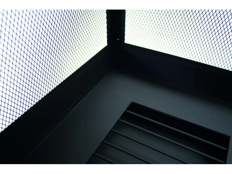 Prachtige tuinhaard kachel voor op het terras. Het gaas rondom voorkomt dat er vonken naar buiten vliegen.