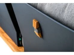 Fraaie loungeset in gecoat aluminium en robuust teak met industriële uitstraling. Teak vormt de stevige en weerbestendige basis van deze loungeset. De poten van aluminium zorgen voor de stoere looks en degelijke constructie. De rugleuningen van aluminium met een coating in dezelfde kleur als het frame, zijn voorzien van onze innovatieve kussenfixatie. Dankzij de lus aan de kussens en het houten staafje is hinderlijk wegglijden van de kussens verleden tijd. De loungetafel (vierkant of rechthoekig) sluit naadloos aan in het ontwerp. Voor deze set zijn optioneel armleuningen met zachte bekleding verkrijgbaar.