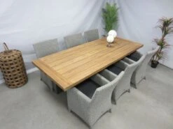 6 tuinstoelen met teak tuintafel 240 x 100 cm.